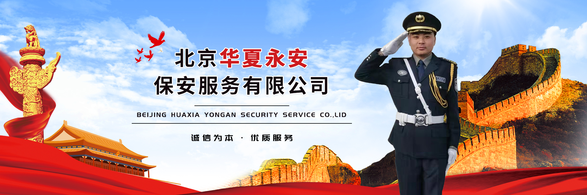 服務特色:公司始終堅持誠信為本、優質服務的宗旨,把社會效益放在首位,以維護首都社會治安,保障客戶安全為己任,以優質的服務、良好的形象,以講政治的高度,認真履行企業職責。經過全體員工的不懈努力,凝心聚力,規范管理,企業不斷發展壯大,倍受客戶的高度認可和上級領導的好評,在社會上樹立了良好的企業形象和信譽,凝聚了一支有志向、有朝氣、有創新、有干勁的過硬團隊。通過認證強化了品質管理,提高了企業效益,增強了客戶信心,擴大了市場份額,提升了企業形象,奠定了行業地位。公司部分服務客戶有:中國城市規劃設計院、中國道教協會、中央戲曲學院、北京市統計局、北京市發改委、北京市公交集團、北京超市發連鎖服務、北京市測繪設計研究院、北京首佳物業管理有限公司、北京房修一物業管理有限公司、道豐物業管理有限公司、新中物業管理(中國)管理有限公司北京分公司等合作單位。